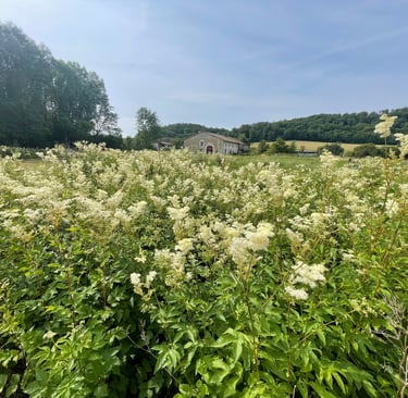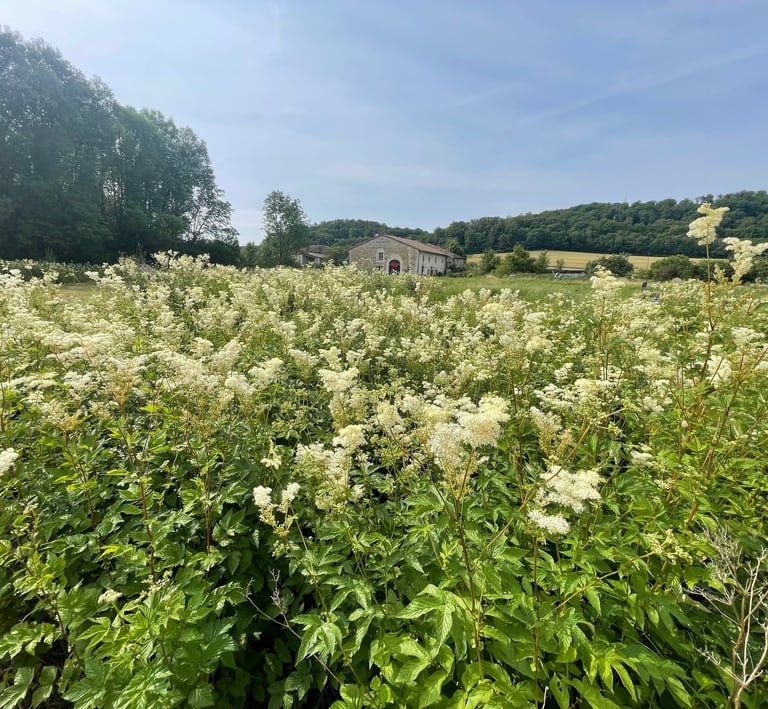 Les cueillettes sauvages de reine des près, d’achillée millefeuille, de tilleul, de sureau ou d'aspérule odorante sont faites dans son environnement proche.