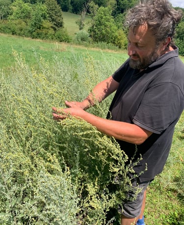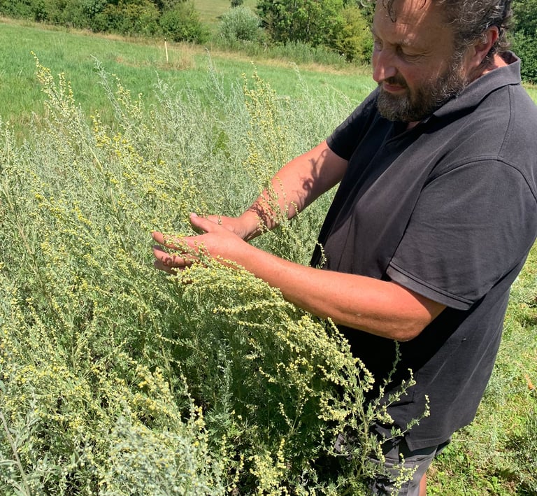 C'est ainsi qu'absinthes et autres armoises, sarriette, thym citronné, menthes, hysope, ... sont produites à la ferme.
